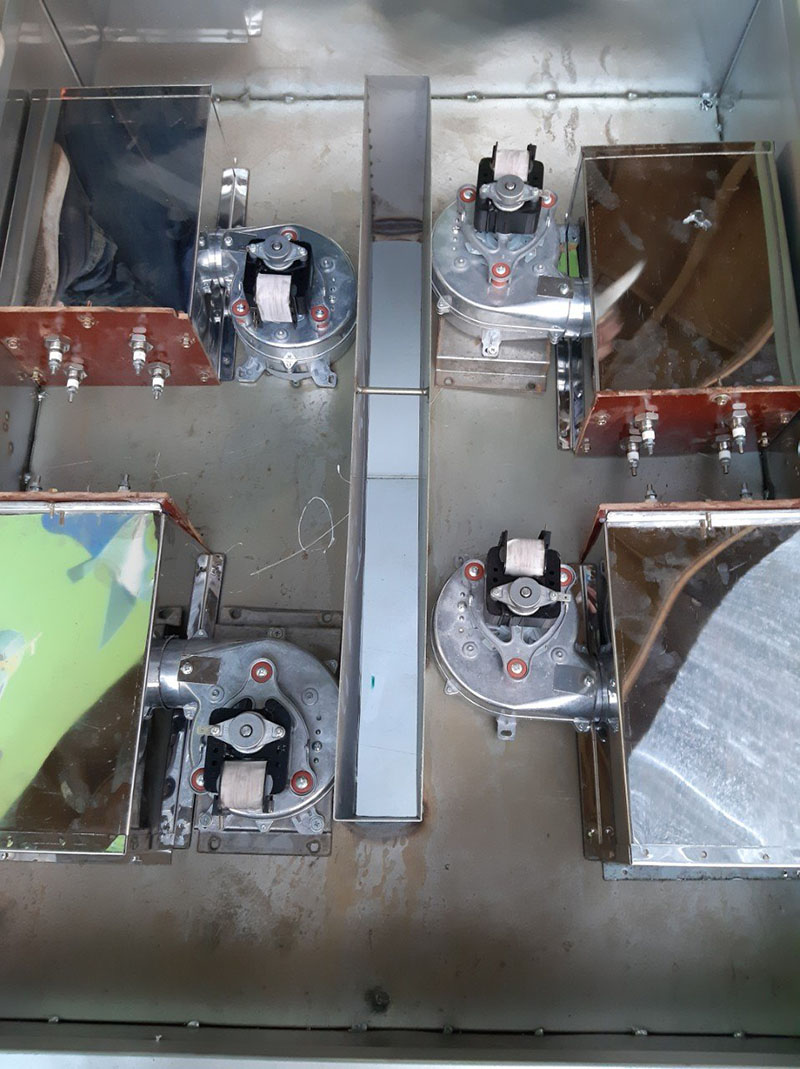 Hệ thống công suất tiêu thụ nhiệt của máy sấy thực phẩm đa năng  bao gồm: 8 thanh nhiệt chữ U (mỗi thanh nhiệt có công suất tiêu thụ 800W/1 thanh). Máy sử dụng nguồn điện thông dụng (220V).