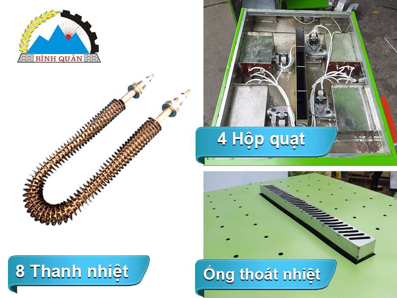 - Công suất hệ thống nhiệt tiêu thụ: 8 thanh nhiệt chữ U, mỗi thanh nhiệt có công suất nhiệt tiêu thụ 800W /1 thanh