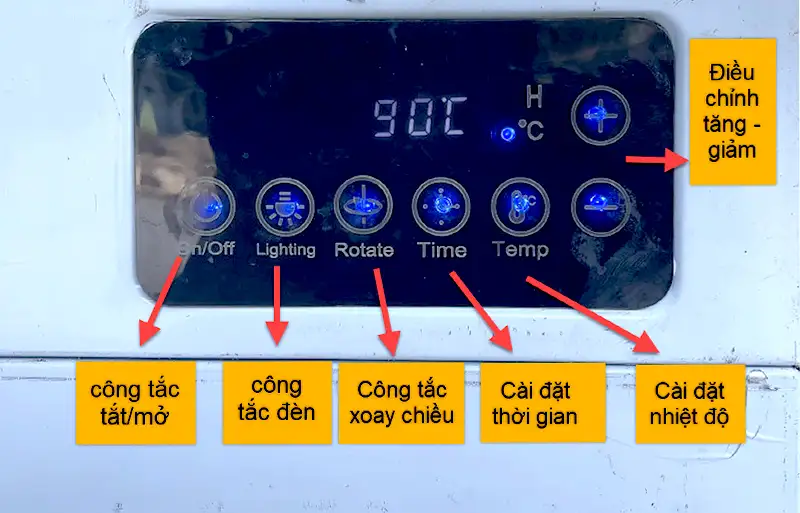 Khi tủ sấy được khởi động, hệ thống thanh nhiệt sẽ tạo ra một lượng nóng tối đa 90 độ C hiển thị trên bảng điều khiển. Kết hợp với 2 quạt gió ở phía sau sẽ thổi khí nóng tuần hoàn đi khắp các ngăn trong tủ.