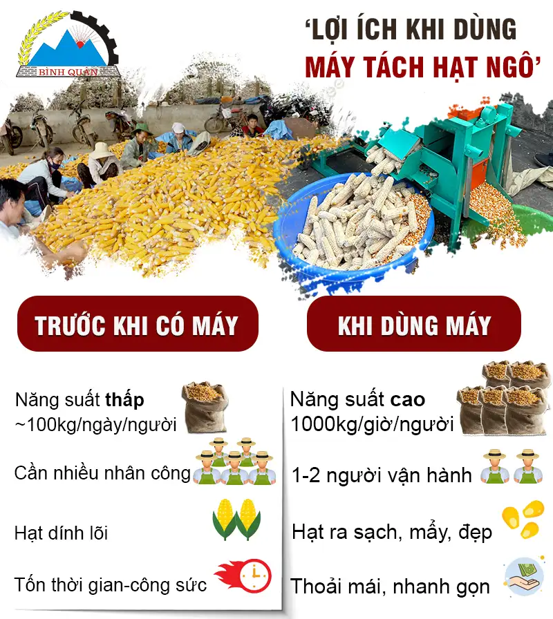 Công ty Bình Quân - đơn vị sản xuất và cung cấp các dòng máy tách hạt ngô UY TÍN - CHẤT LƯỢNG TỐT trên thị trường, được nhiều khách hàng tin tưởng:
