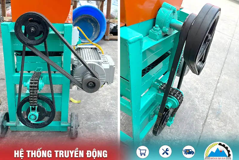 Thiết kế hiện đại, với kết cấu máy được hàn gắn chắc chắn không gây rung lắc trong quá trình bóc tách hạt