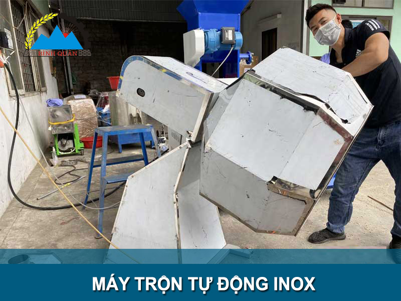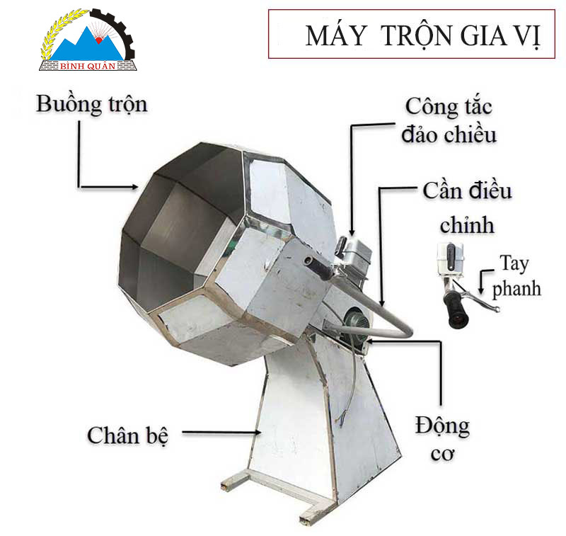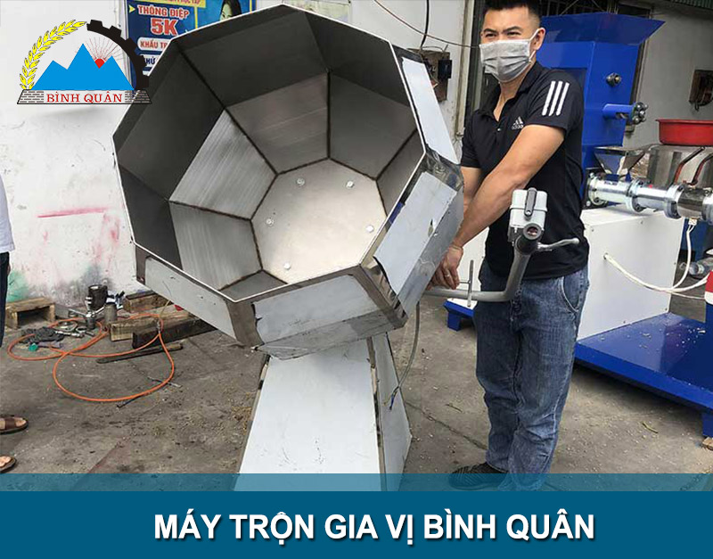 Máy trộn gia vị do công ty Bình Quân trực tiếp sản xuất thiết bị hỗ trợ người dùng công việc đảo trộn đều nguyên liệu số lượng lớn tự động, không mất nhiều thời gian và công sức