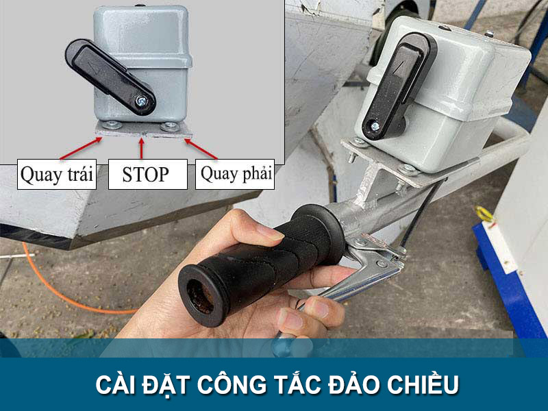 - Bật công tắc bên phải nếu muốn buồng trộn đảo chiều đúng chiều kim đồng hồ