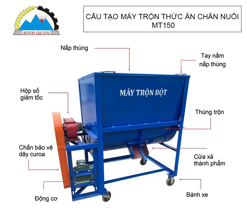Cấu tạo máy trộn thức ăn chăn nuôi MT150