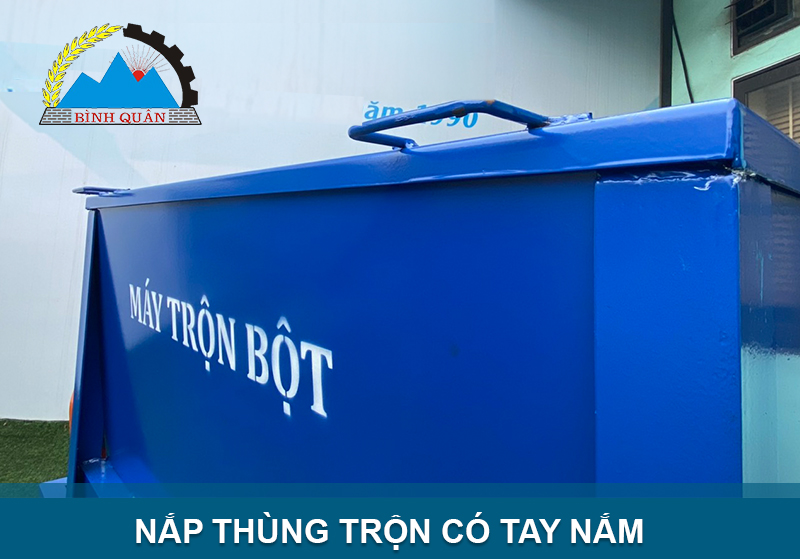 Bên trên thùng có nắp đậy, không làm bắn nguyên liệu ra ngoài trong khi trộn.