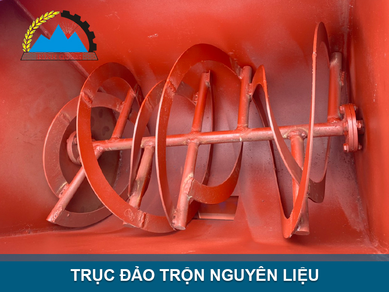 Trục xoắn sẽ quay tròn theo chuyển động của dây buly. Trong quá trình trộn, các cánh xoắn cuộn , đảo đều nguyên liệu. Khung máy chắc chắn, đảm bảo an toàn cho người sử dụng