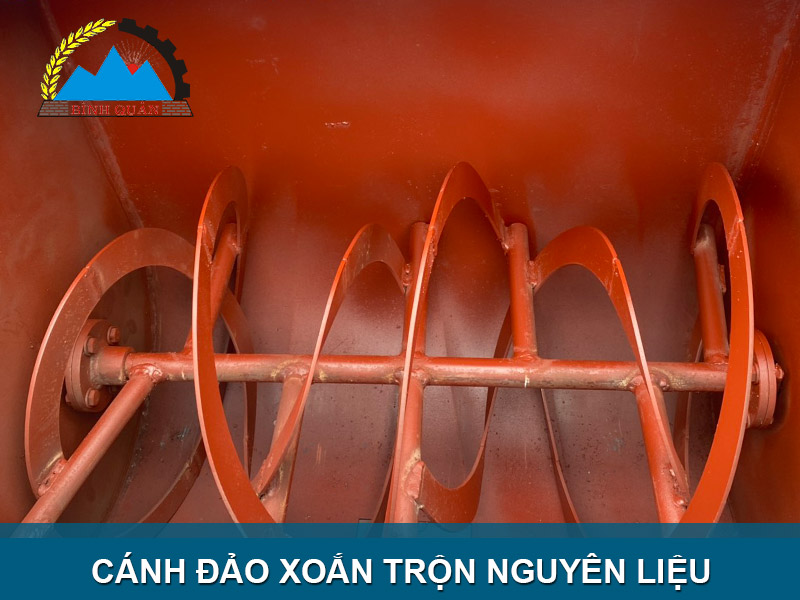 Nguyên liệu được trộn bởi các cánh đảo, được đặt sát đáy buồng. Qua đó, máy có thể trộn đảo được hết nguyên liệu trong thùng chứa