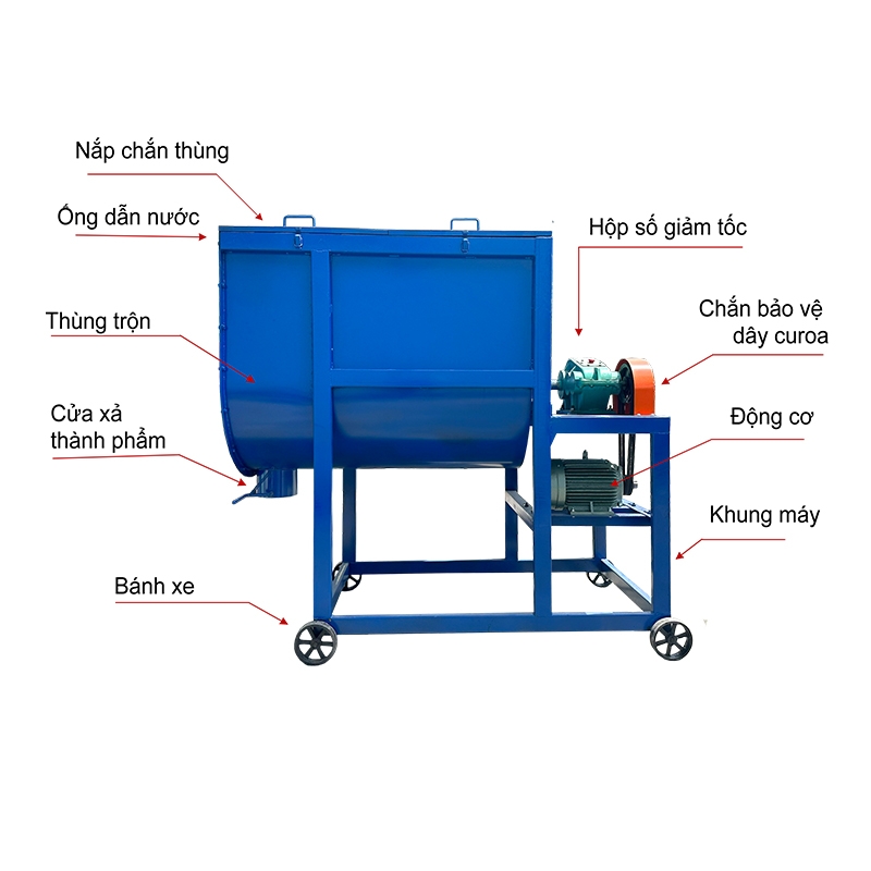 Tình năng : máy trộn đảo đều hỗn hợp nguyên liệu làm thức ăn chăn nuôi, cơ sở chế biến thực phẩm..