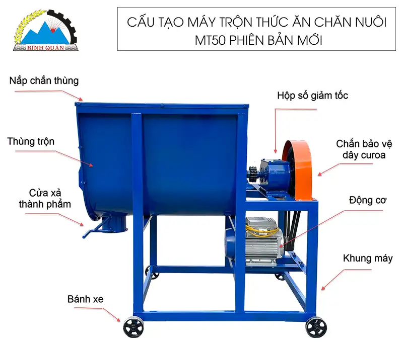 Cấu tạo máy trộn thức ăn chăn nuôi MT50 phiên bản mới