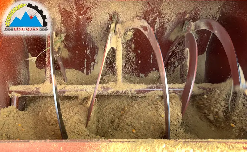 - Nguyên liệu được trộn đảo đều các phía đến khi đạt tiêu chuẩn sẽ xả trực tiếp ra ngoài cửa xả
