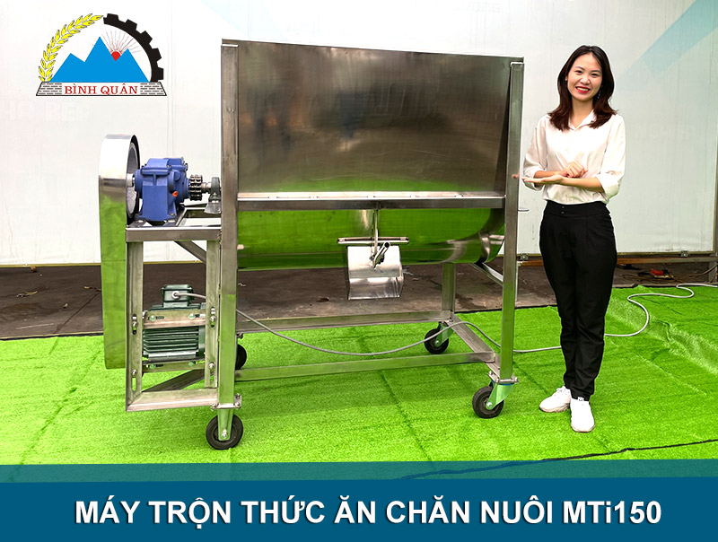 Máy trộn thức ăn chăn nuôi MTi150 hay còn gọi làm máy trộn bột 150kg/mẻ làm bằng inox cao cấp do công ty Bình Quân trực tiếp sản xuất chuyên dùng trộn - đảo hỗn hợp nguyên liệu số lượng lớn