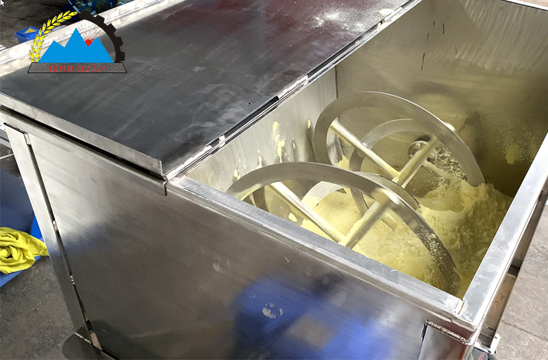 - Nguyên liệu được cánh đảo trộn đều các phía