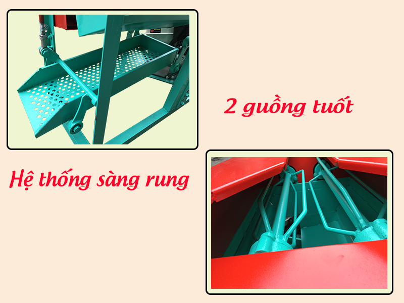 Bộ phận sàng rung có nhiệm vụ sàng lọc phần đất, rễ bám vào củ lạc cho năng suất cao 2-3 tạ/h.