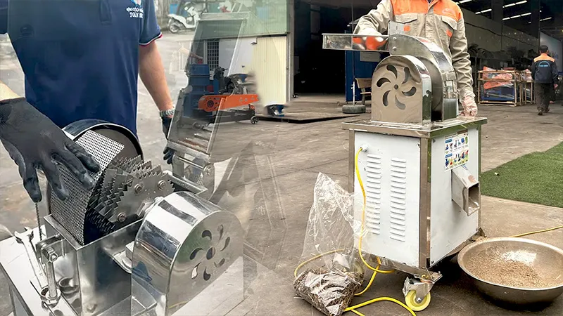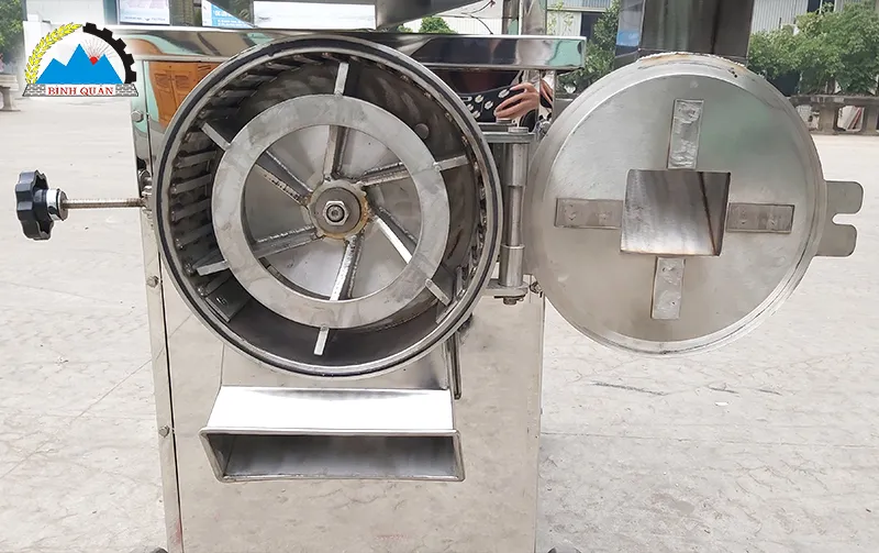 Nếu thành phẩm của bạn không cần quá mịn nên sử dụng máy nghiền gia vị. Máy sử dụng búa đập, nghiền phân tán lực va đập, giúp máy xử lý khối lượng lớn nguyên liệu trong thời gian ngắn