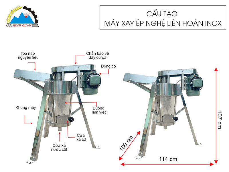 Cấu tạo máy xay ép nghệ liên hoàn inox