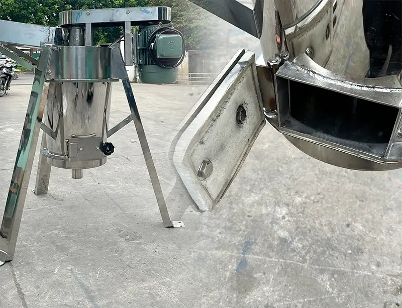 Toa nạp nguyên liệu được thiết kế to rộng với sức chứa mỗi mẻ hàng cân nguyên liệu. Thiết kế hướng dốc thuận tiện đưa nguyên liệu di chuyển xuống buồng làm việc