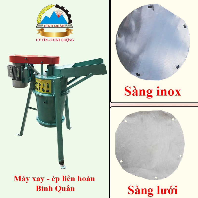 Khi mua máy xay - ép liên hoàn Bình Quân sẽ được tặng kèm 1 sàng inox, 1 sàng lưới sơ cua