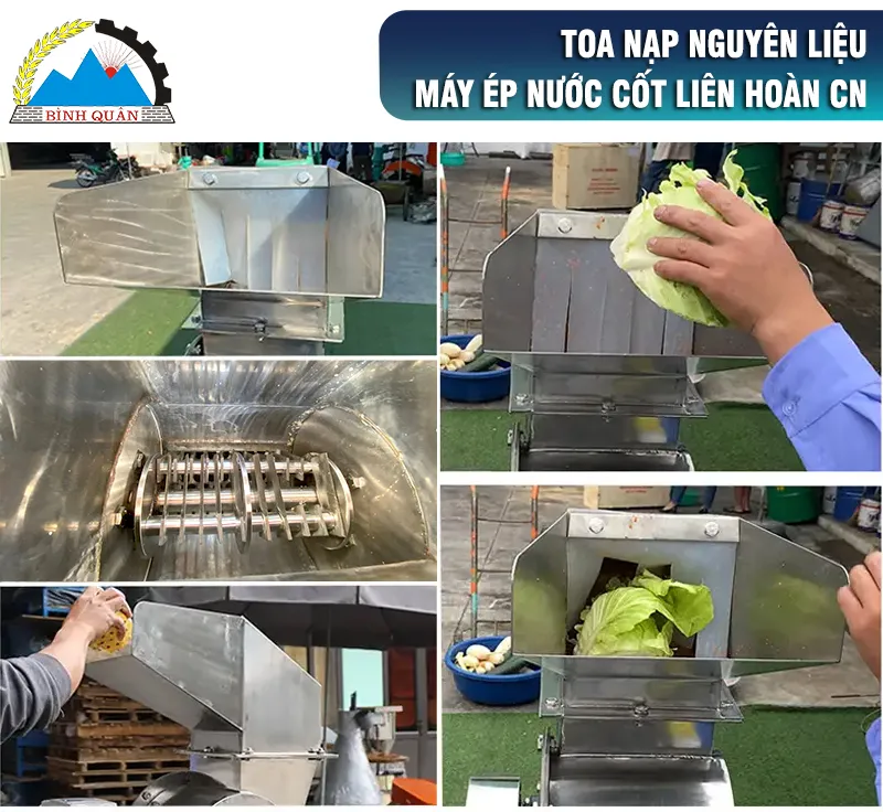 Máy xay ép nước cốt liên hoàn công nghiệp phiên bản mới do công ty Bình Quân sản xuất - xay ép kiệt các loại rau củ quả lên tới 98%, cho năng suất đạt từ 500 - 600 kg/giờ
