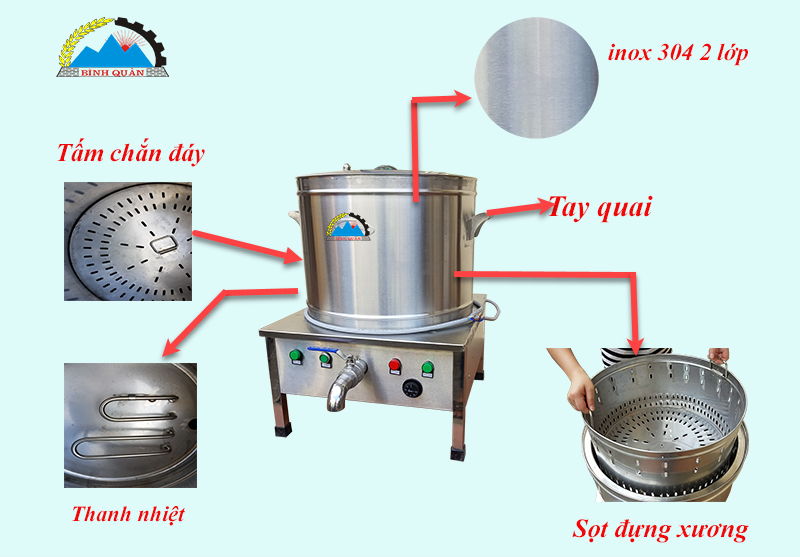 - Nồi ninh xương có dung tích từ 60 lít - 200 lít