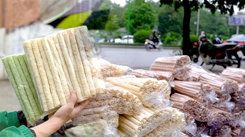 - Khi bỏng ra đã đạt chuẩn, người thợ làm bỏng sẽ cắt thành từng đoạn và đóng gói ngay khi còn ấm để giữ độ giòn