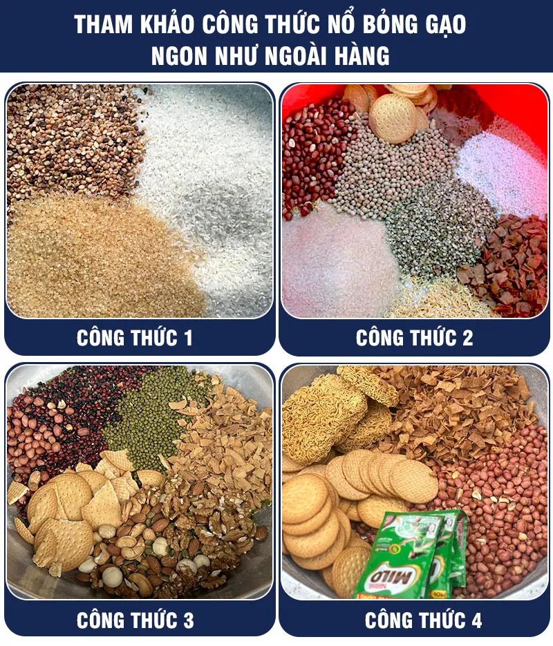 Bà con có thể tham khảo công thức nổ bỏng gạo sau: