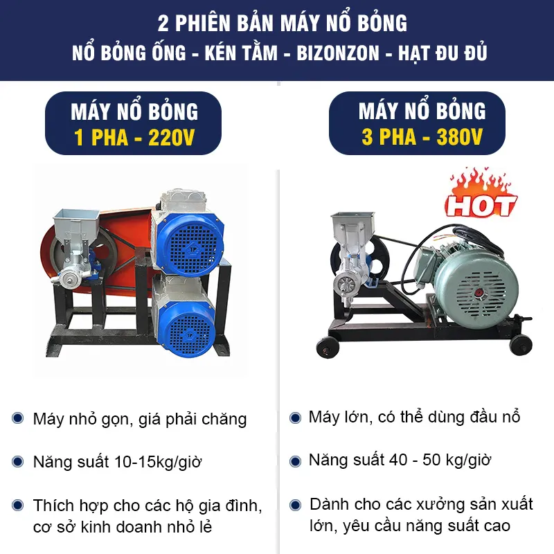Ngược lại, máy cũ hoặc tự chế thường khiến nguyên liệu nổ không đều, thất thoát từ 20-30% làm giảm sản lượng đáng kể