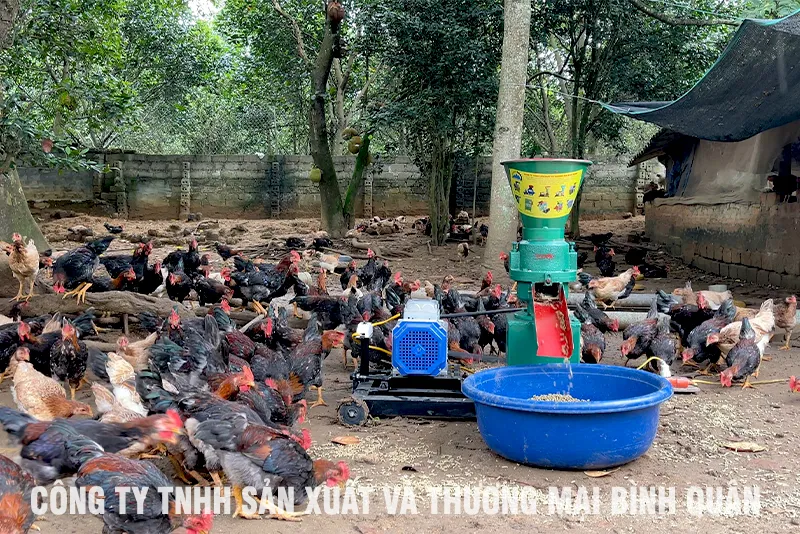 - Kết hợp sử dụng thiết bị làm thức ăn dạng viên cho gà, kiểm soát được nguyên liệu tránh các mầm bệnh