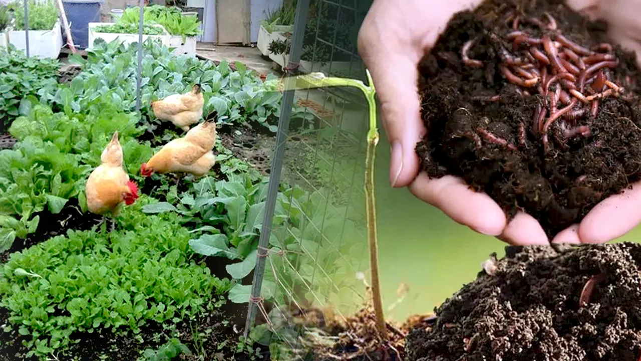 Mô hình này không lãng phí bất kỳ nguồn dinh dưỡng nào, mà còn tạo ra 3 nguồn lợi nhuận từ gà, trùn quế và rau