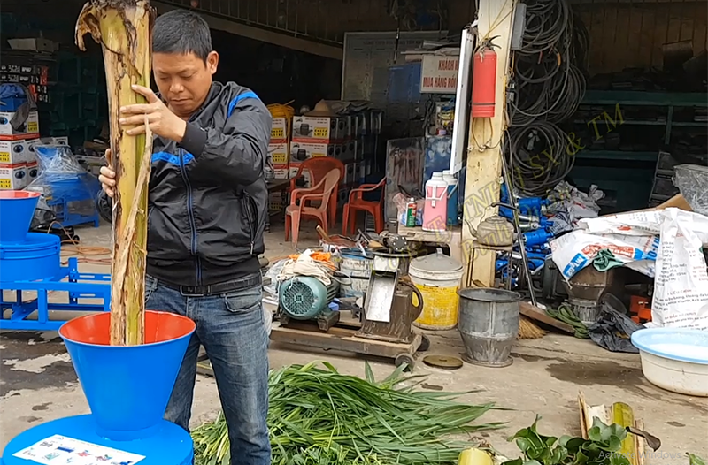 Băm chuối - thái rau công việc hằng ngày của bà con nhà nông nhưng với mô hình chăn nuôi rộng, mức số lượng công việc lớn thì việc đầu tư máy móc sẽ góp phần giúp bà con giảm bớt vất vả.