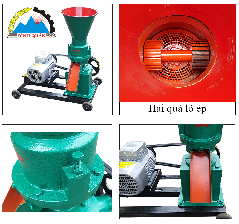 Máy ép cám viên S150 được sản xuất tại Việt Nam do công ty TNHH sản xuất và thương mại Bình Quân sản xuất bảo hành kỹ thuật tới 6 tháng.