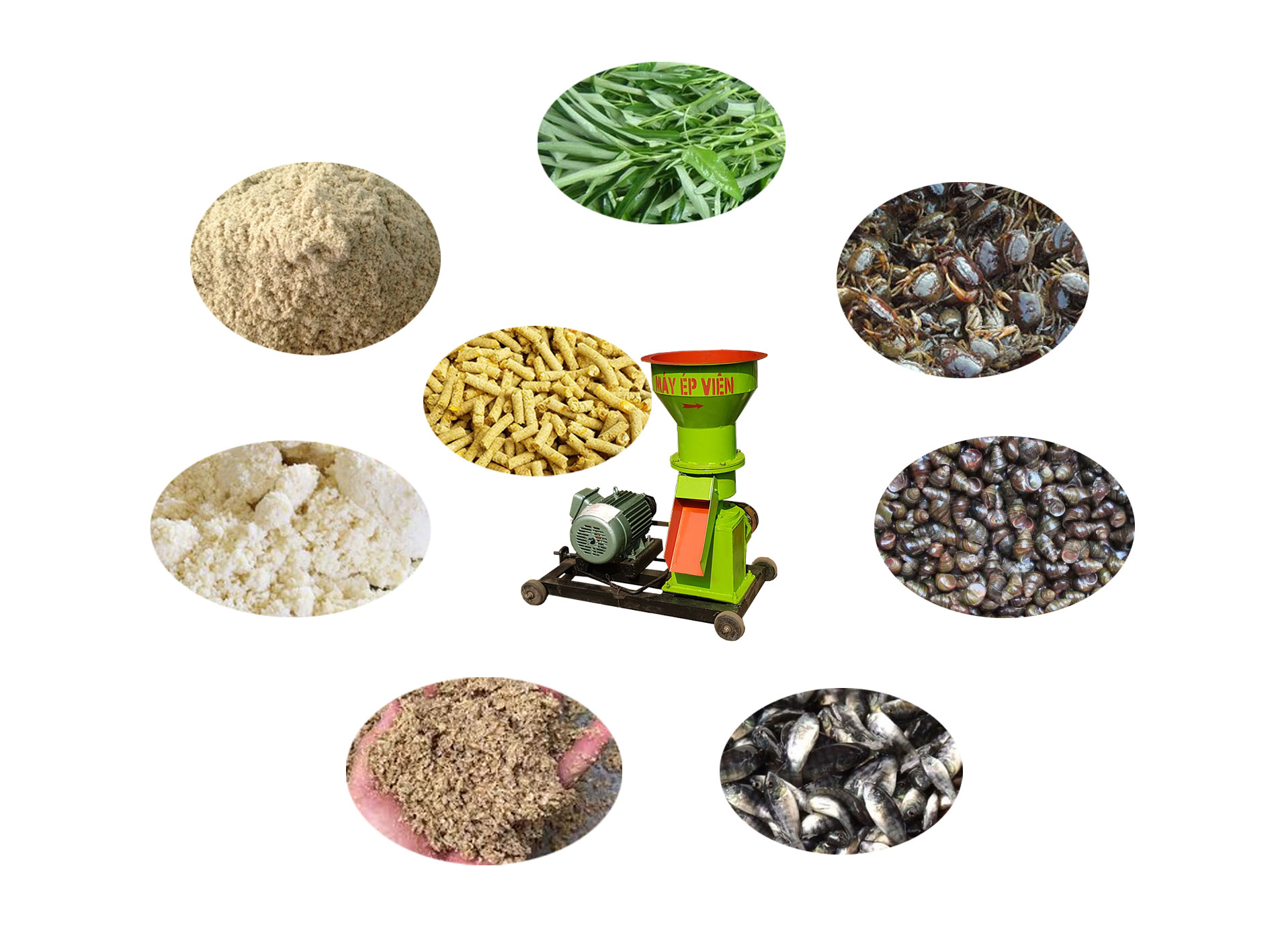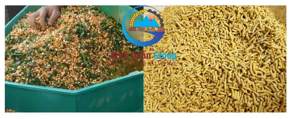 -Và để vừa tiết kiệm chi phí vừa đảm bảo chất lượng đủ dinh dưỡng cho vật nuôi cty Bình quân đã sản xuất ra dòng Máy Ép cám viên ,làm ra những viên cám từ những nguyên liệu sẵn có .Máy ép cám viên có khả năng Nghiền-Ép các loại nguyên liệu hỗn hợp thành thức ăn dạng viên để phục vụ chăn nuôi .